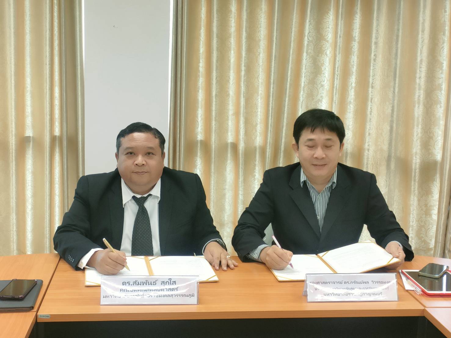 เมื่อวันที่ 6 พฤศจิกายน 2568 คณะศิลปศาสตร์ มหาวิทยาลัยเทคโนโลยีราชมงคลสุวรรณภูมิ นำโดย อาจารย์ ดร.สัมพันธ์ สุกใส คณบดีคณะศิลปศาสตร์ ในฐานะผู้แทนมหาวิทยาลัย ได้ร่วมลงนามในบันทึกข้อตกลงความร่วมมือ (MOA) กับ รองศาสตราจารย์ ดร.กรัณย์พล วิวรรธมงคล ผู้แทนจากมหาวิทยาลัยราชภัฏกาญจนบุรี ณ มหาวิทยาลัยราชภัฏกาญจนบุรี