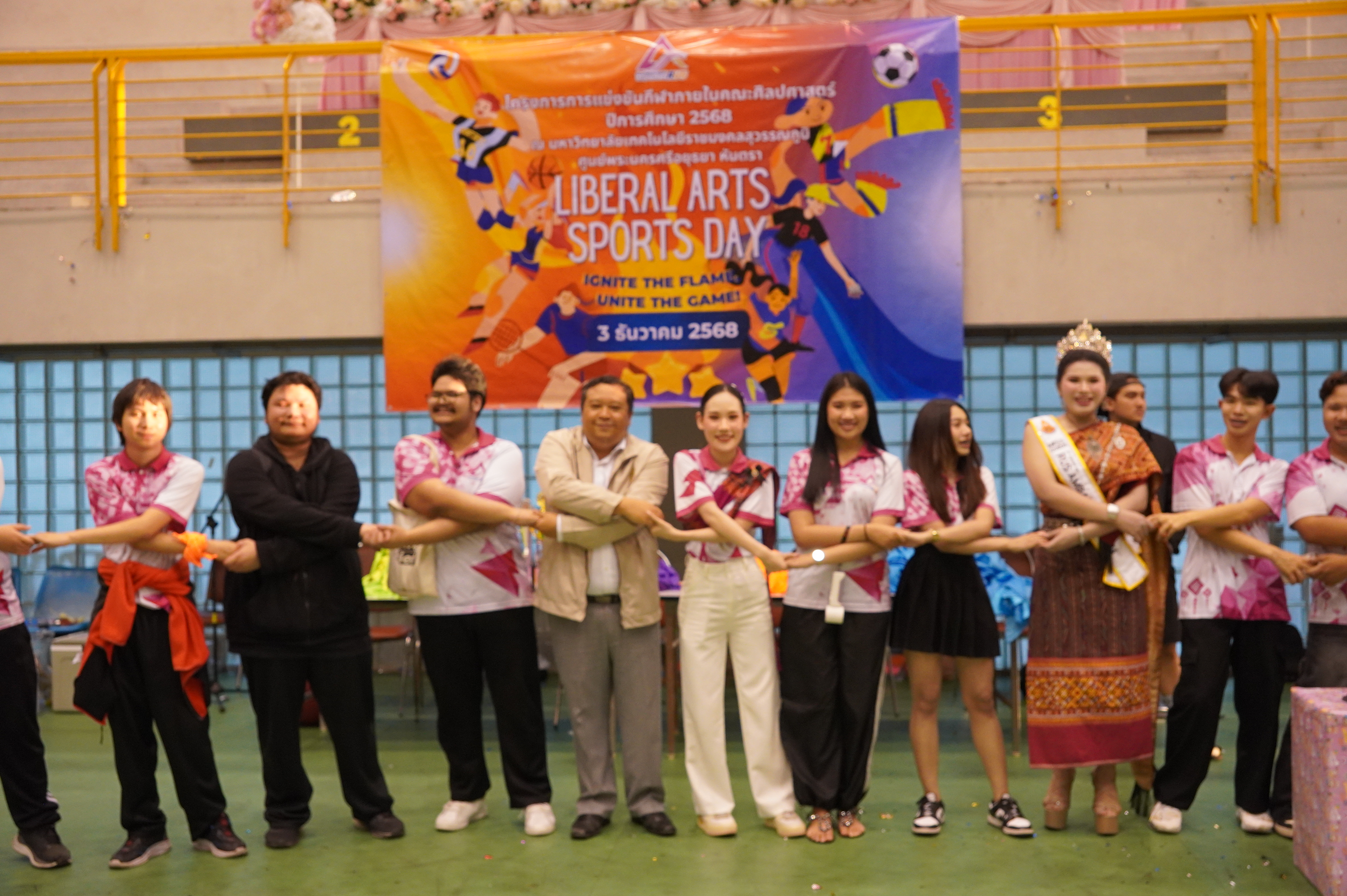 เมื่อวันที่ 3 ธันวาคม 2568 อาจารย์ ดร.สัมพันธ์ สุกใส คณบดีคณะศิลปศาสตร์ ได้เป็นประธานในพิธีปิดโครงการกีฬาภายในคณะศิลปศาสตร์ ประจำปีการศึกษา 2569 ณ โรงยิมมหาวิทยาลัยเทคโนโลยีราชมงคลสุวรรณภูมิ ศูนย์พระนครศรีอยุธยา หันตรา โดยมีวัตถุประสงค์เพื่อให้นักศึกษาได้พัฒนาทักษะทางด้านกีฬา สร้างความสามัคคีในหมู่นักศึกษา และคัดเลือกตัวแทนนักกีฬาเข้าร่วมการแข่งขันกีฬาภายในมหาวิทยาลัย