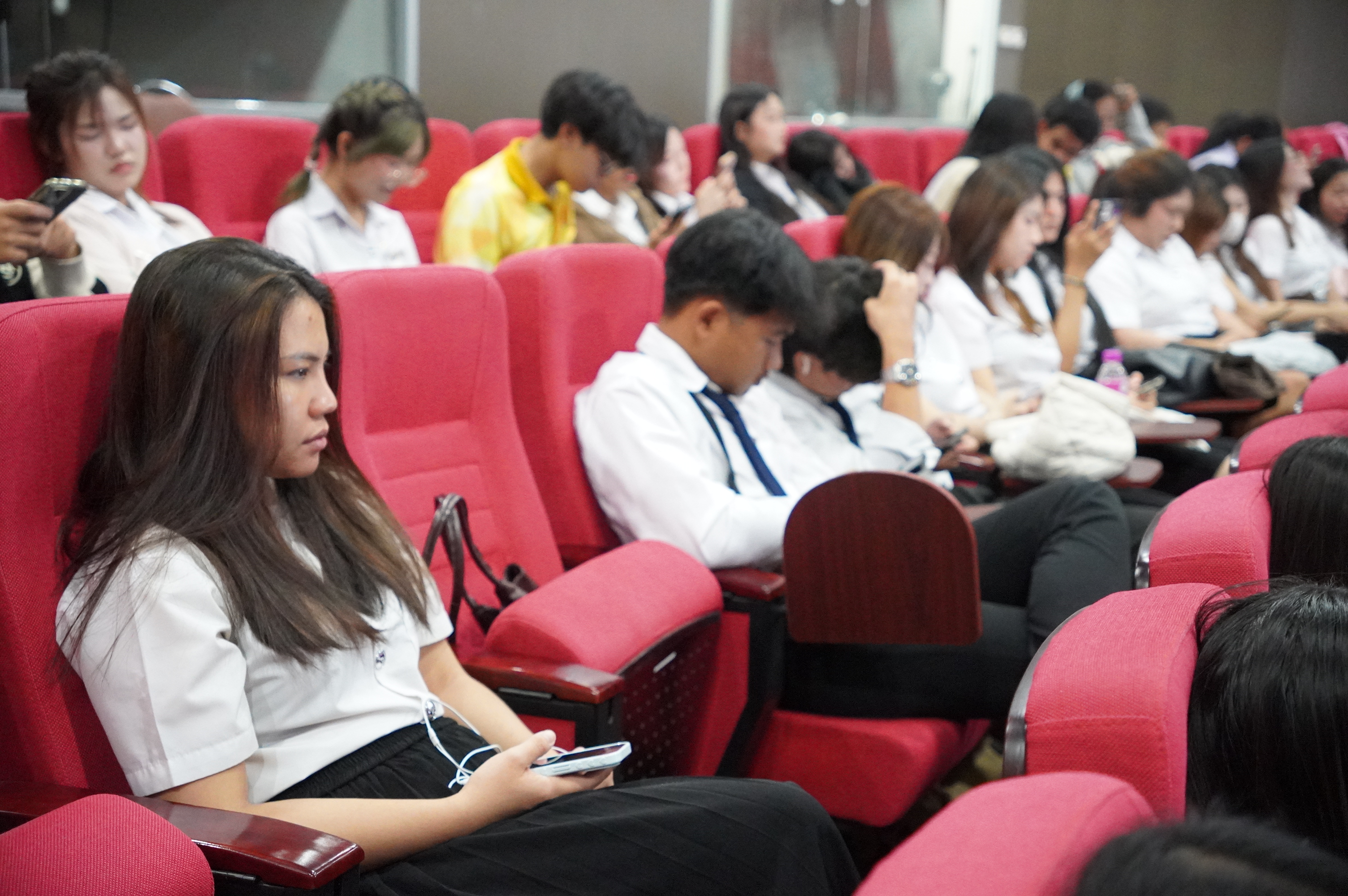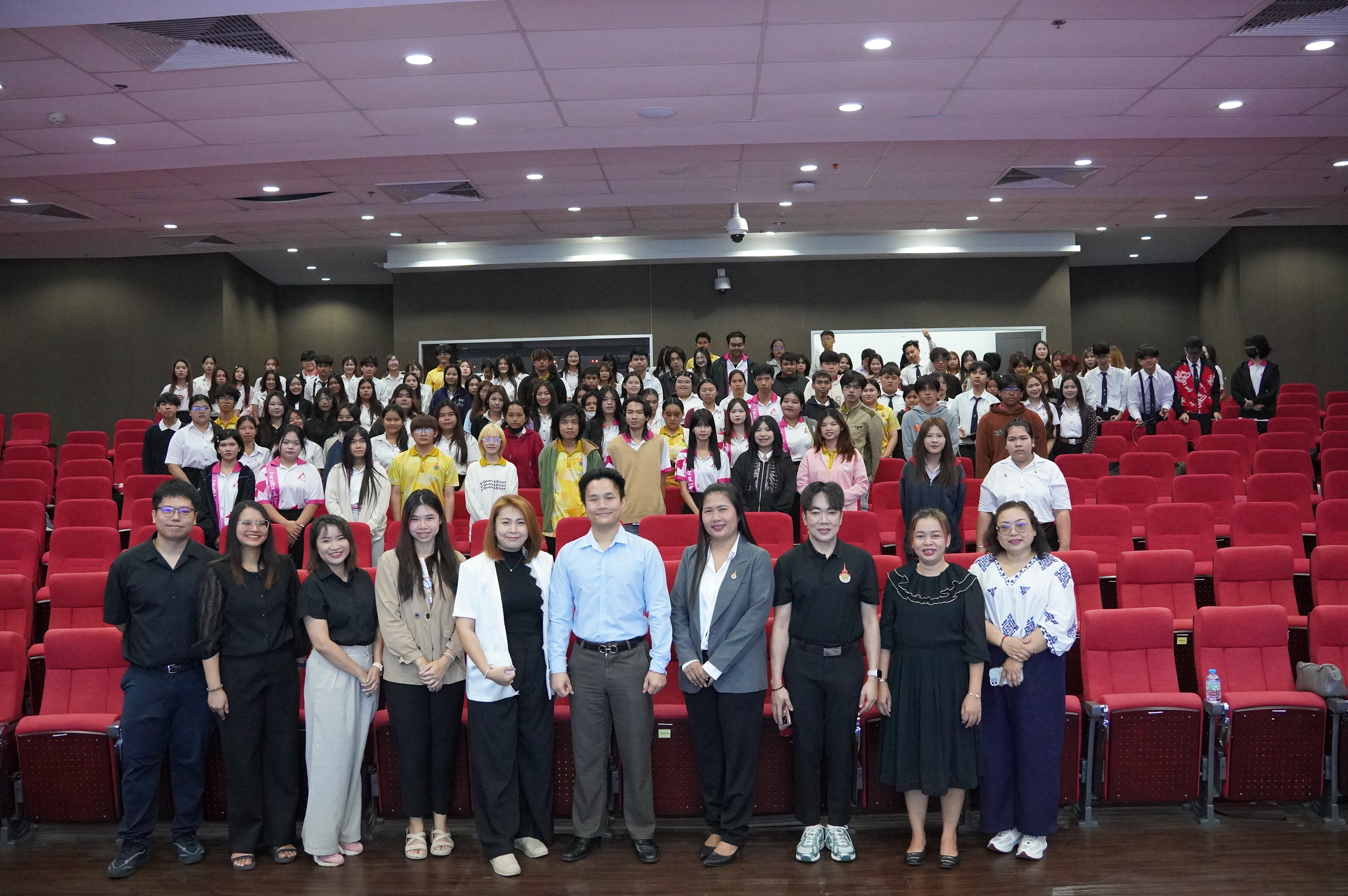 กิจกรรมดังกล่าวจัดขึ้นในรูปแบบการเสวนา หัวข้อ “การพัฒนาทักษะภาษาอังกฤษในยุคดิจิทัล” โดยได้รับเกียรติจากวิทยากรผู้เชี่ยวชาญ ได้แก่ คุณรุ่งโรจน์ ตติยวงศ์วิวัฒน์ และ คุณชวัลรัตน์ เอื้อเฟื้อ ซึ่งได้ร่วมถ่ายทอดองค์ความรู้ แนวคิด และประสบการณ์ในการพัฒนาทักษะภาษาอังกฤษควบคู่กับการประยุกต์ใช้เทคโนโลยีสารสนเทศอย่างมีประสิทธิภาพ จัดขึ้นในวันอังคารที่ 23 ธันวาคม 2568 ณ ห้องเธียร์เตอร์ ชั้น 3 อาคาร 32 โดยมุ่งหวังให้นักศึกษาได้ตระหนักถึงความสำคัญของภาษาอังกฤษในโลกยุคใหม่ พร้อมสามารถนำเทคโนโลยีดิจิทัลมาใช้เป็นเครื่องมือในการพัฒนาทักษะทางภาษา อันจะนำไปสู่การเตรียมความพร้อมสู่มาตรฐานระดับนานาชาติในอนาคต