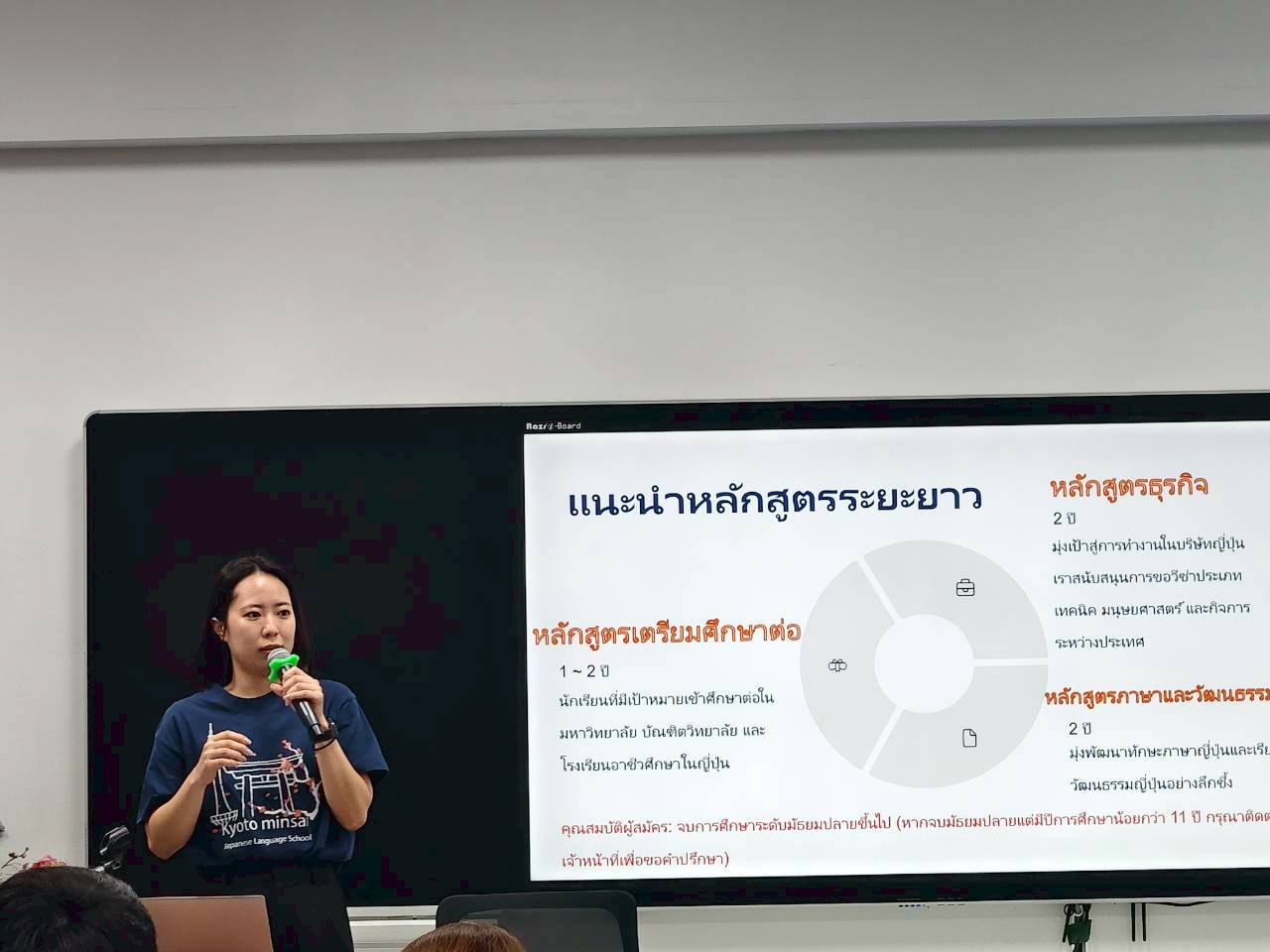 ภายในกิจกรรม นักศึกษาได้รับฟังการบรรยายจาก Miss Pattarasaya Mr.Matsuno Miss Oshima เกี่ยวกับระบบการศึกษาในประเทศญี่ปุ่น แนวทางการเตรียมความพร้อมด้านภาษา การสมัครเรียน การเรียนรู้วัฒนธรรมท้องถิ่นของประเทศญี่ปุ่น กิจกรรมดังกล่าวจัดขึ้นเมื่อวันที่ 12 กุมภาพันธ์ 2569 ณ ห้องประชุมชมพูพูนพิชญ์ คณะศิลปศาสตร์ โดยได้รับการประสานงานจากอาจารย์รุจิกา ธรรมลักษมี หัวหน้าสาขาวิชาภาษาต่างประเทศ ซึ่งมุ่งเน้นการส่งเสริมศักยภาพนักศึกษาให้มีความพร้อมทั้งด้านภาษาและความเข้าใจบริบทสากล เพื่อก้าวสู่เวทีนานาชาติอย่างมั่นใจ